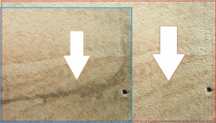 写真のようなフロアマットのシミも落とします。シミの種類によりますが、お待ちいただける時間で落とすこともできます.