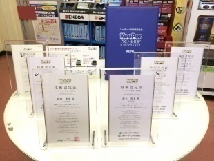 また、ガラス系コーティングを施工し、万が一お車を板金、塗装をする事になってしまった場合、この証明書が有れば 保険対応も出来る場合がございますので、修理前に、当店へご相談ください。