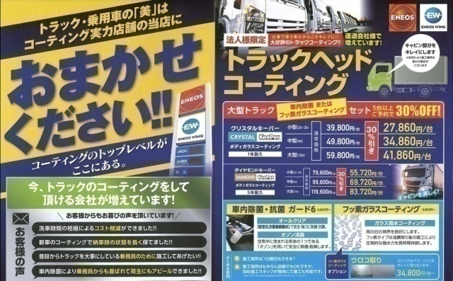 また、クリスタルキーパーやダイヤモンドキーパー等のガラス系コーティングには、施工1か月目、6か月目に無料で手洗い洗車ができるカードもお渡しさせて頂いてますので、施工後のフォローもお任せください!